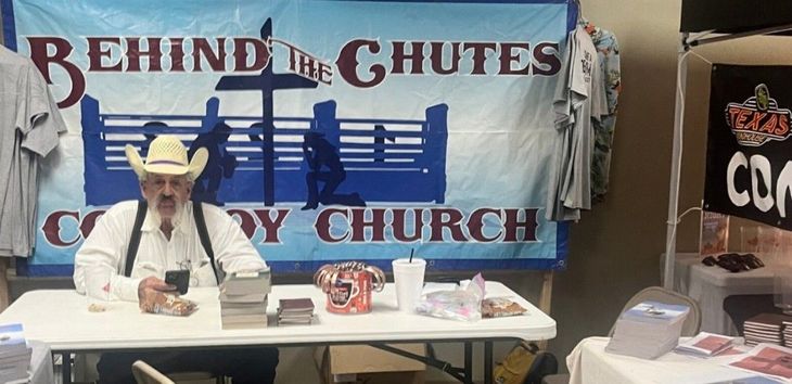 Later, in Sept. 2021, Belote encouraged his congregation to get involved in reaching the rodeo attendees for Christ by setting up a booth where church members pass out “literature, handouts, [promotional materials] about the church, and give away Bibles and daily devotionals” that relate the gospel to each rodeo event.